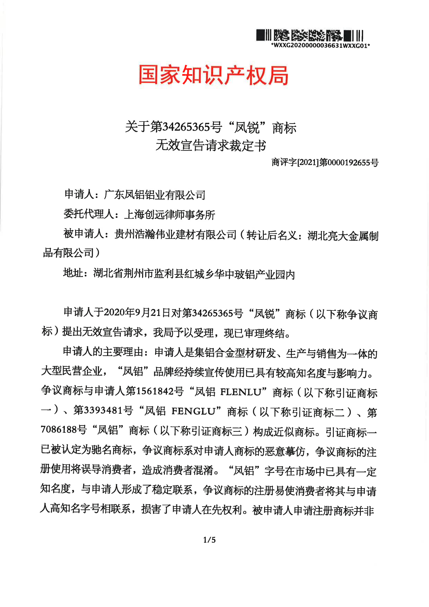 白山辉知队 | 国家知识产权局:“凤锐”商标无效
