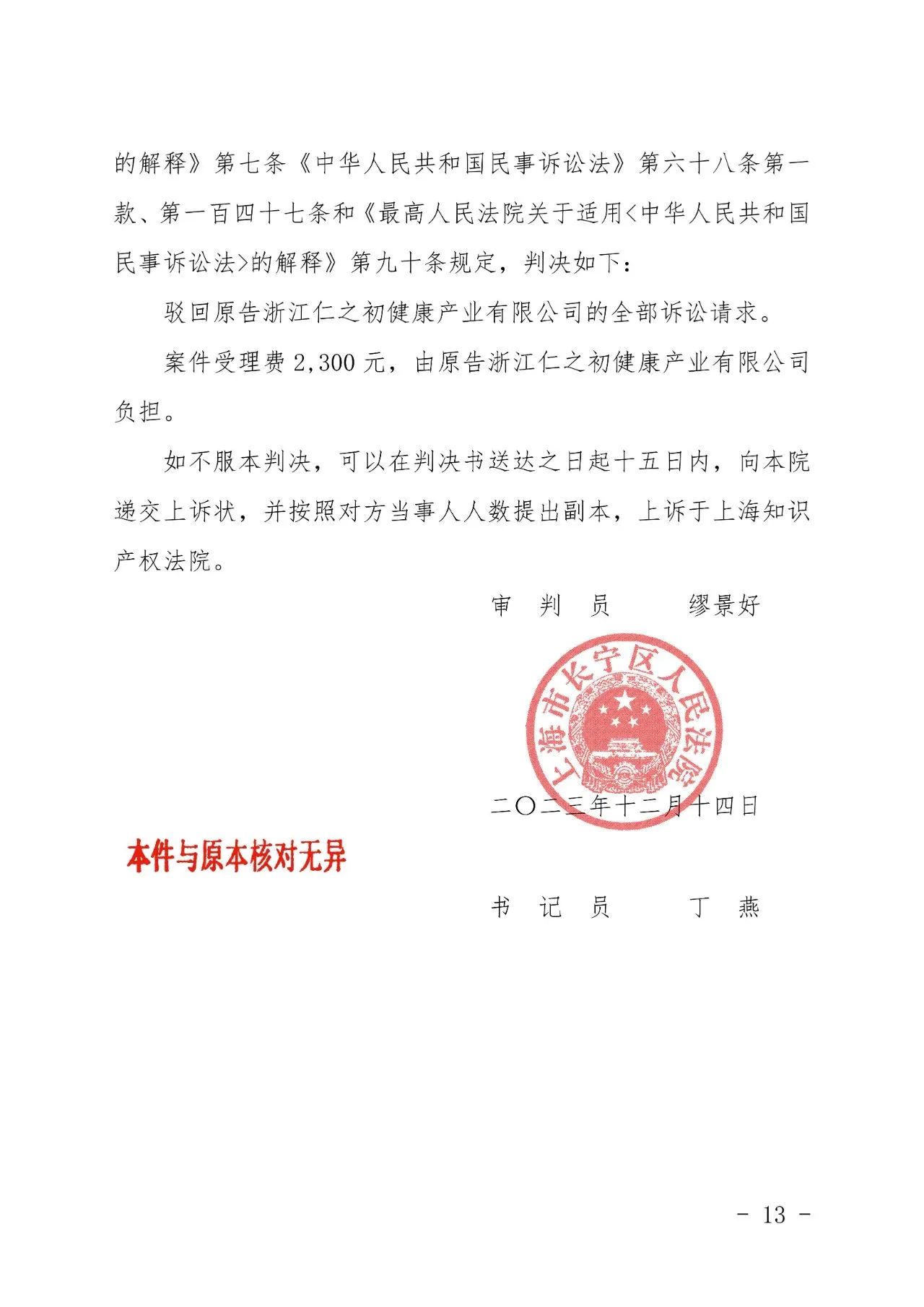 白山辉知胜诉佳讯 | “仁之初健康”著作权及不正当竞争纠纷案,法院:驳回全部诉讼请求!